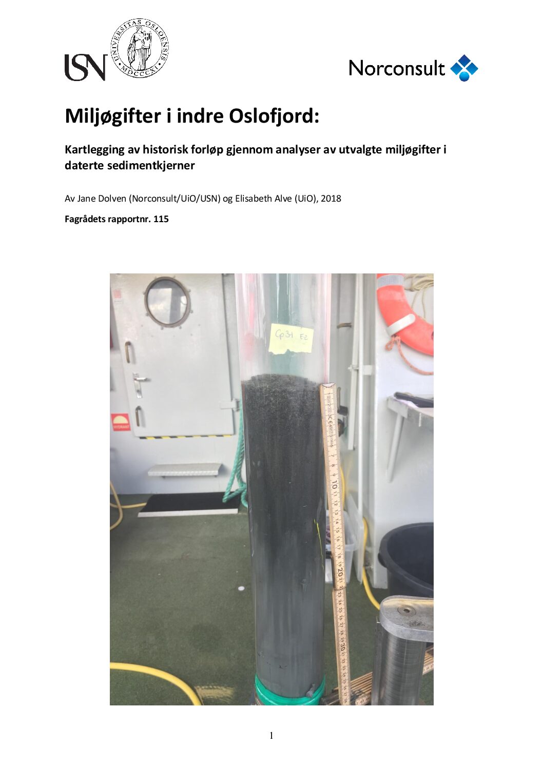 Rapportbeskrivelse: Kartlegging av historisk forløp gjennom analyser av utvalgte miljøgifter i daterte sedimentkjerner.